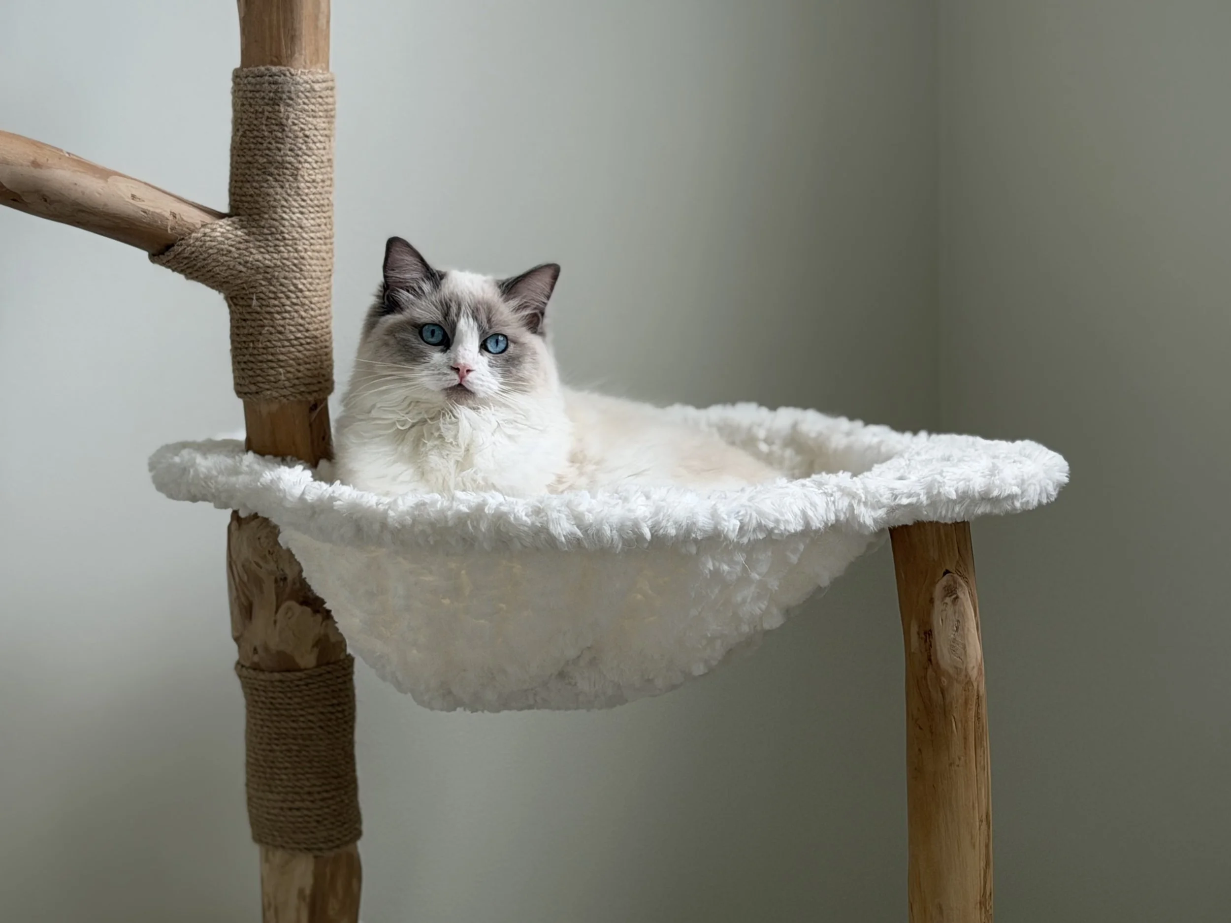 Sweet-natured and affectionate, BlueBell has the calm and loving temperament Ragdolls are known for. She enjoys being close to her people and has a gentle, relaxed personality that makes her a joy to be around. Whether she’s quietly observing her surroundings or curling up nearby, BlueBell brings a peaceful and loving presence to our home.